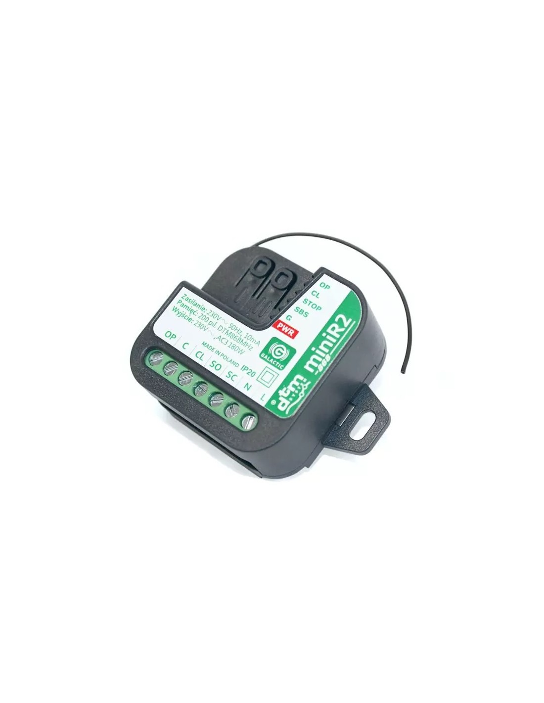 MINIR2 868 to sterownik przeznaczony do współpracy z napędami rolet, wyposażonymi w silnik jednofazowy 230V AC. Umożliwia zarówno zdalne jak i ręczne sterowanie pracą siłownika rolety. Kompaktowa obudowa pozwala na montaż w puszkach instalacyjnych.