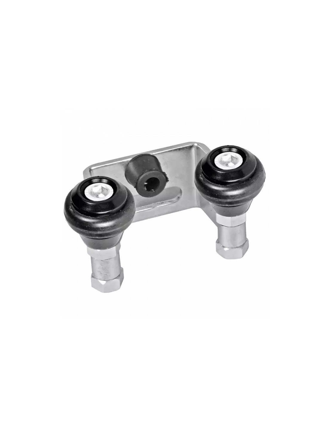 Uchwyt górny do bram przesuwnych samonośnych i szynowych, który stabilizuje je po zamknięciu uniemożliwiając ruchy boczne. Uchwyt posiada gumowane rolki zmniejszające hałas podczas zamykania bramy, a także gumowy odbój. Rozstaw między rolkami wynosi 60 mm. Produkt ocynkowany.