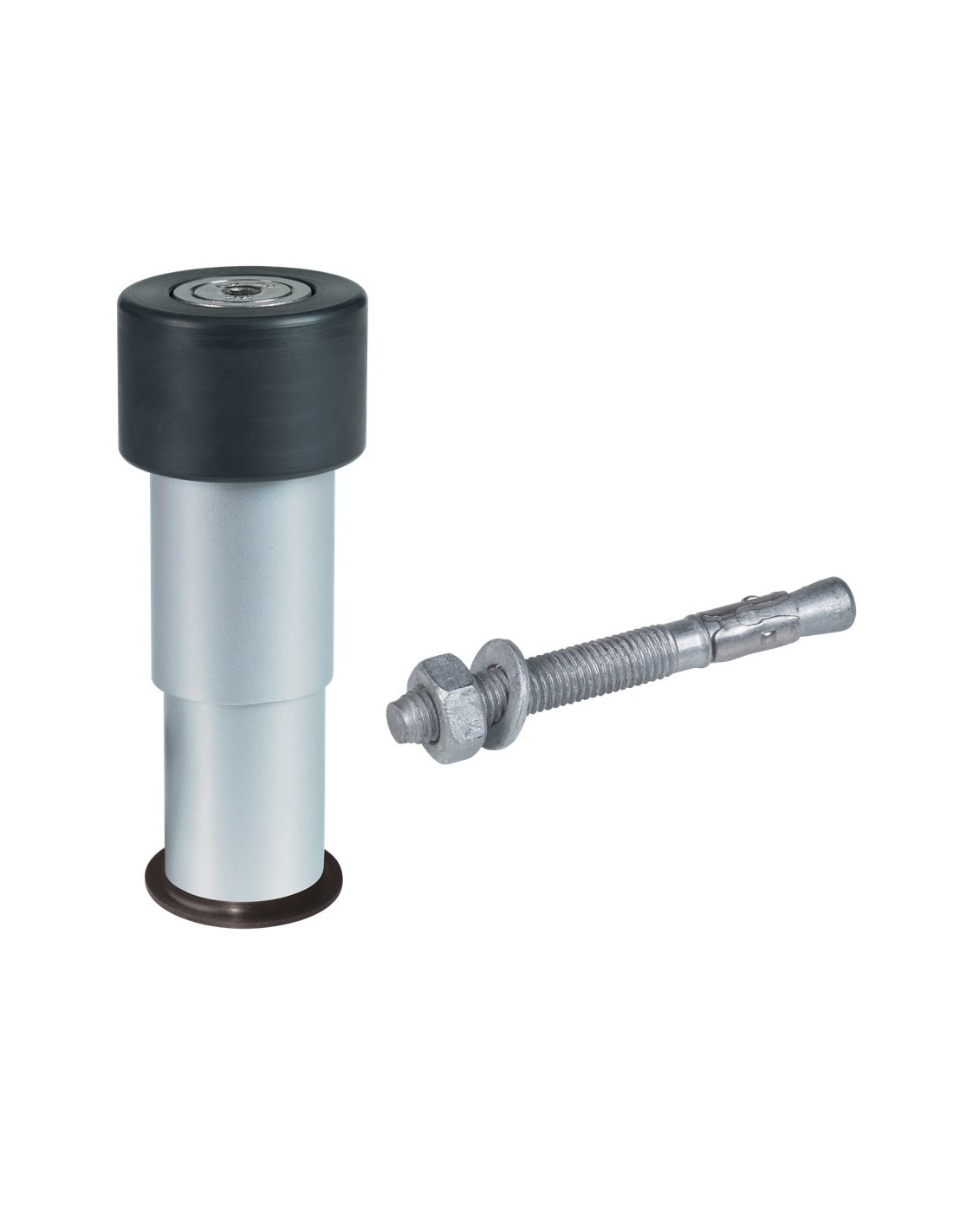 Aluminiowa kolumna z odbojem gumowym zapobiega uszkodzeniu bramy lub furtki. Możliwość regulacji wysokości z 100 mm do 140 mm. Montaż możliwy w betonie, w komplecie śruba pierścieniowa.
