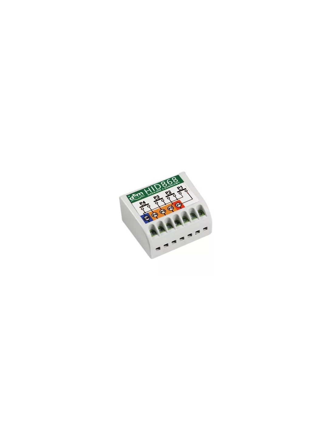 Jest to czterokanałowy nadajnik radiowy w nowym systemie DTM868MHz. Zastosowanie nowoczesnych i innowacyjnych technologii pozwoliło uzyskać pewniejszy zasięg radiowy, a system kodowania IRS 104-bit chroni przed ingerencją osób niepowołanych. HID 868 przeznaczony jest do montażu w puszce instalacyjnej wraz z dowolnym przyciskiem chwilowym. Cechuje się niewielkimi wymiarami oraz bardzo prostą obsługą. Pozwala uzyskać w łatwy sposób dyskretne sterowanie automatyką bramową czy domową.