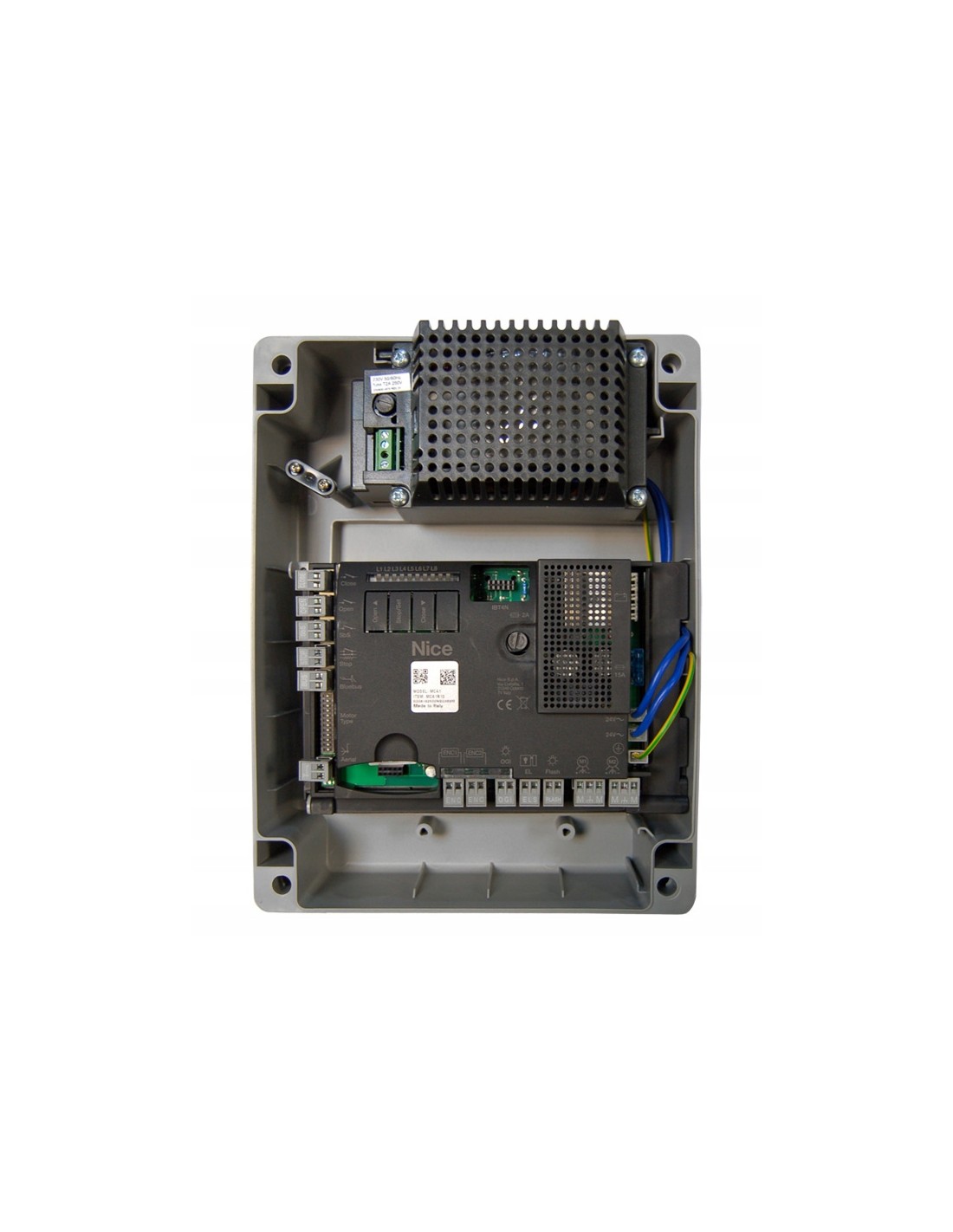 - Funkcje w automatycznym wczytywaniu: Automatyczne rozpoznanie urządzeń podłączonych do wyjścia BlueBus; Automatyczne rozpoznanie rodzaju urządzenia podłączonego do zacisku „STOP” (styk NO, NC lub oporność 8,2 KΩ); Automatyczne rozpoznanie skoku skrzydeł i automatyczne obliczenie punktów zwalniania i otwarcia częściowego (różnych w zależności od rodzaju instalacji)
